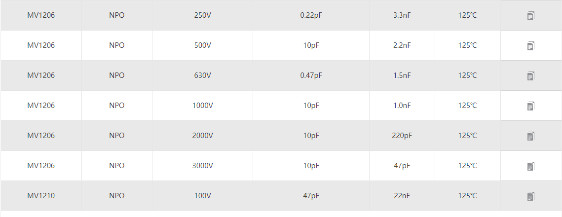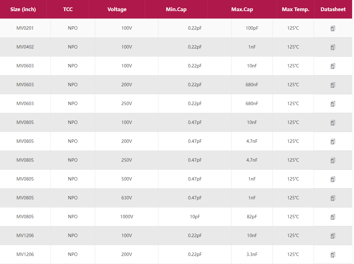 信維中高壓電容 產(chǎn)品型號(hào):0201 0402 0603 0805 1206 1210